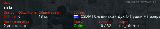 Последний раз был в сети Вчера Игрок с таким ником замечен на 22 серверах