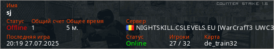 Последний раз был в сети 20:19 27.07.2025 Игрок с таким ником замечен на 10 серверах