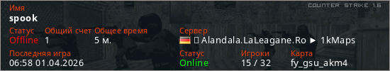 Играет на Counter Strike 1.6 сервере. Страна: ГерманияПервый раз замечен 06:56 01.04.2026