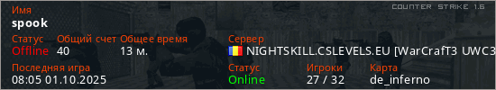 Играет на Counter Strike 1.6 сервере. Страна: РумынияПервый раз замечен 05:39 27.06.2025