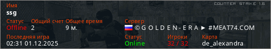 Играет на Counter Strike 1.6 сервере. Страна: РоссияПервый раз замечен 22:17 17.11.2025