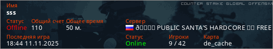 Играет на Counter Strike Global Offensive сервере. Страна: РоссияПервый раз замечен 02:06 24.01.2025