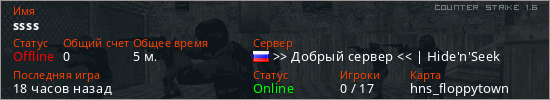 Последний раз был в сети 16 часов назад Игрок с таким ником замечен на 46 серверах
