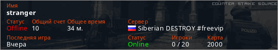Последний раз был в сети Вчера Игрок с таким ником замечен на 28 серверах