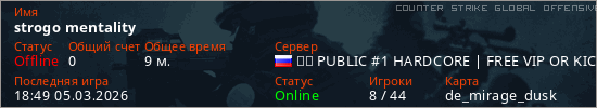 Играет на Counter Strike Global Offensive сервере. Страна: РоссияПервый раз замечен 17:42 29.11.2025