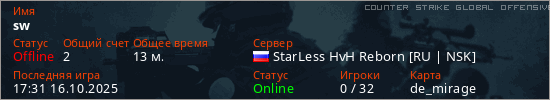 Играет на Counter Strike Global Offensive сервере. Страна: РоссияПервый раз замечен 16:50 15.10.2025