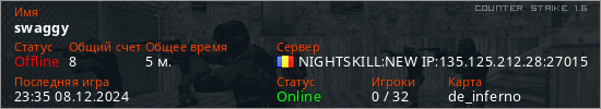 Играет на Counter Strike 1.6 сервере. Страна: РумынияПервый раз замечен 23:31 08.12.2024