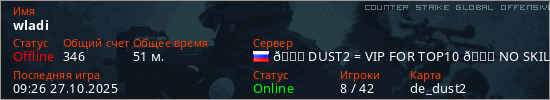 Играет на Counter Strike Global Offensive сервере. Страна: РоссияПервый раз замечен 21:09 25.10.2025