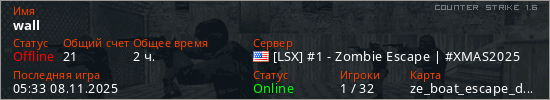 Играет на Counter Strike 1.6 сервере. Страна: СШАПервый раз замечен 03:29 25.09.2025
