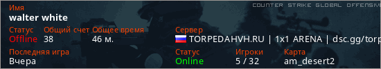 Играет на Counter Strike Global Offensive сервере. Страна: РоссияПервый раз замечен 18:24 25.03.2026