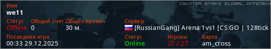 Играет на Counter Strike Global Offensive сервере. Страна: РоссияПервый раз замечен 15:09 28.12.2025