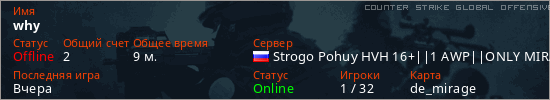 Последний раз был в сети Вчера Игрок с таким ником замечен на 50 серверах
