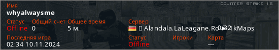 Играет на Counter Strike 1.6 сервере. Страна: ГерманияПервый раз замечен 02:27 10.11.2024