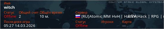 Играет на Counter Strike Global Offensive сервере. Страна: РоссияПервый раз замечен 04:12 14.03.2026