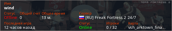 Играет на Team Fortress 2 сервере. Страна: РоссияПервый раз замечен 18:31 08.03.2026