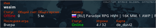 Играет на Counter Strike Global Offensive сервере. Страна: РоссияПервый раз замечен 19:49 04.12.2025