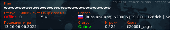 Играет на Counter Strike Global Offensive сервере. Страна: РоссияПервый раз замечен 13:24 06.06.2025