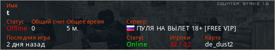 Последний раз был в сети Вчера Игрок с таким ником замечен на 40 серверах