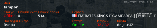 Последний раз был в сети Вчера Игрок с таким ником замечен на 3 серверах