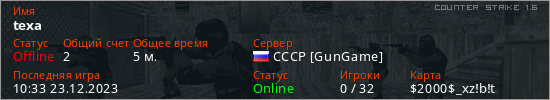 Играет на Counter Strike 1.6 сервере. Страна: РоссияПервый раз замечен 10:29 23.12.2023