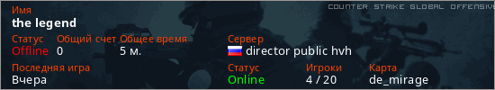 Играет на Counter Strike Global Offensive сервере. Страна: РоссияПервый раз замечен 15:32 08.04.2026