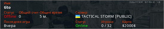 Играет на Counter Strike 1.6 сервере. Страна: УкраинаПервый раз замечен 00:04 22.02.2026