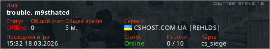 Играет на Counter Strike 1.6 сервере. Страна: УкраинаПервый раз замечен 15:18 18.03.2026