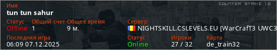 Играет на Counter Strike 1.6 сервере. Страна: РумынияПервый раз замечен 05:31 26.11.2025