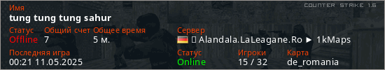 Играет на Counter Strike 1.6 сервере. Страна: ГерманияПервый раз замечен 00:19 11.05.2025