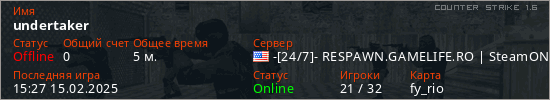 Играет на Counter Strike 1.6 сервере. Страна: СШАПервый раз замечен 15:25 15.02.2025