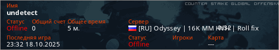 Играет на Counter Strike Global Offensive сервере. Страна: РоссияПервый раз замечен 23:30 18.10.2025
