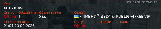 Играет на Counter Strike 1.6 сервере. Страна: УкраинаПервый раз замечен 20:30 23.02.2026