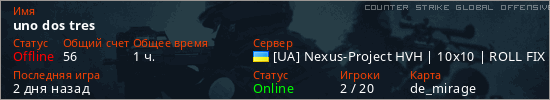 Играет на Counter Strike Global Offensive сервере. Страна: УкраинаПервый раз замечен 20:37 27.03.2026