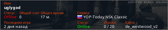 Играет на Counter Strike Source сервере. Страна: РоссияПервый раз замечен 23:31 29.01.2026