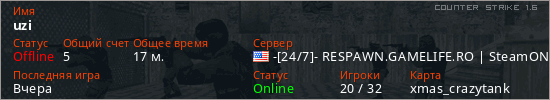 Последний раз был в сети Вчера Игрок с таким ником замечен на 17 серверах