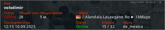 Играет на Counter Strike 1.6 сервере. Страна: ГерманияПервый раз замечен 12:09 10.09.2025