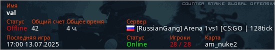 Играет на Counter Strike Global Offensive сервере. Страна: РоссияПервый раз замечен 03:45 09.03.2025
