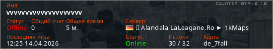 Играет на Counter Strike 1.6 сервере. Страна: ГерманияПервый раз замечен 12:23 14.04.2026