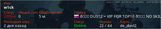 Играет на Counter Strike Global Offensive сервере. Страна: РоссияПервый раз замечен 14:00 05.03.2026