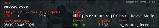 Играет на Counter Strike 1.6 сервере. Страна: РумынияПервый раз замечен 09:43 27.10.2024