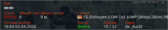 Играет на Counter Strike 1.6 сервере. Страна: ГерманияПервый раз замечен 16:16 02.04.2026