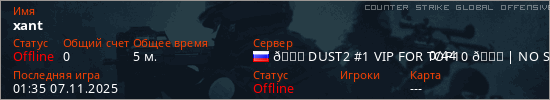 Играет на Counter Strike Global Offensive сервере. Страна: РоссияПервый раз замечен 01:24 07.11.2025