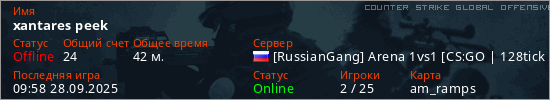 Играет на Counter Strike Global Offensive сервере. Страна: РоссияПервый раз замечен 11:21 05.02.2025