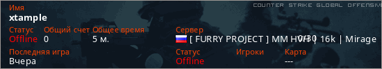 Последний раз был в сети Вчера Игрок с таким ником замечен на 47 серверах