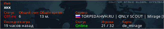 Последний раз был в сети 18 часов назад Игрок с таким ником замечен на 64 серверах