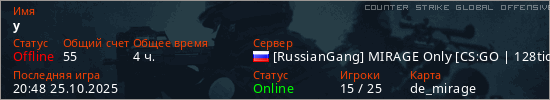 Последний раз был в сети 20:48 25.10.2025 Игрок с таким ником замечен на 37 серверах