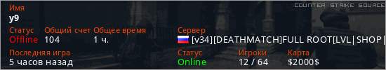 Играет на Counter Strike Source сервере. Страна: РоссияПервый раз замечен 14:51 11.03.2026