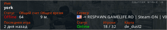 Последний раз был в сети 2 дня назад Игрок с таким ником замечен на 12 серверах