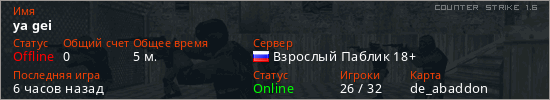 Играет на Counter Strike 1.6 сервере. Страна: РоссияПервый раз замечен 10:32 10.12.2025