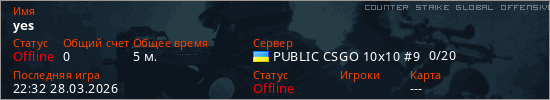 Играет на Counter Strike Global Offensive сервере. Страна: УкраинаПервый раз замечен 22:05 28.03.2026